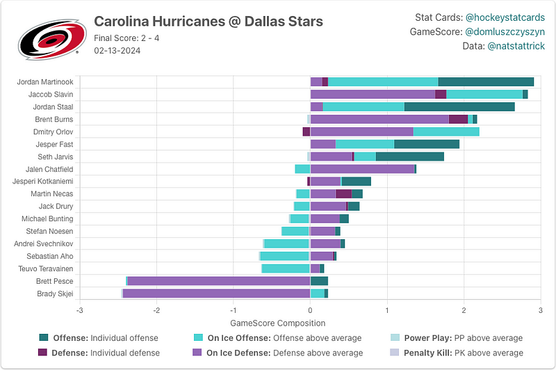 Brett Pesce’s doing his damnedest to make himself affordable this offseason. Last night, the Pesce/Brady Skjei pairing didn’t have their best night in a 4–2 loss to the Dallas Stars. The GameScore painted an ugly picture: